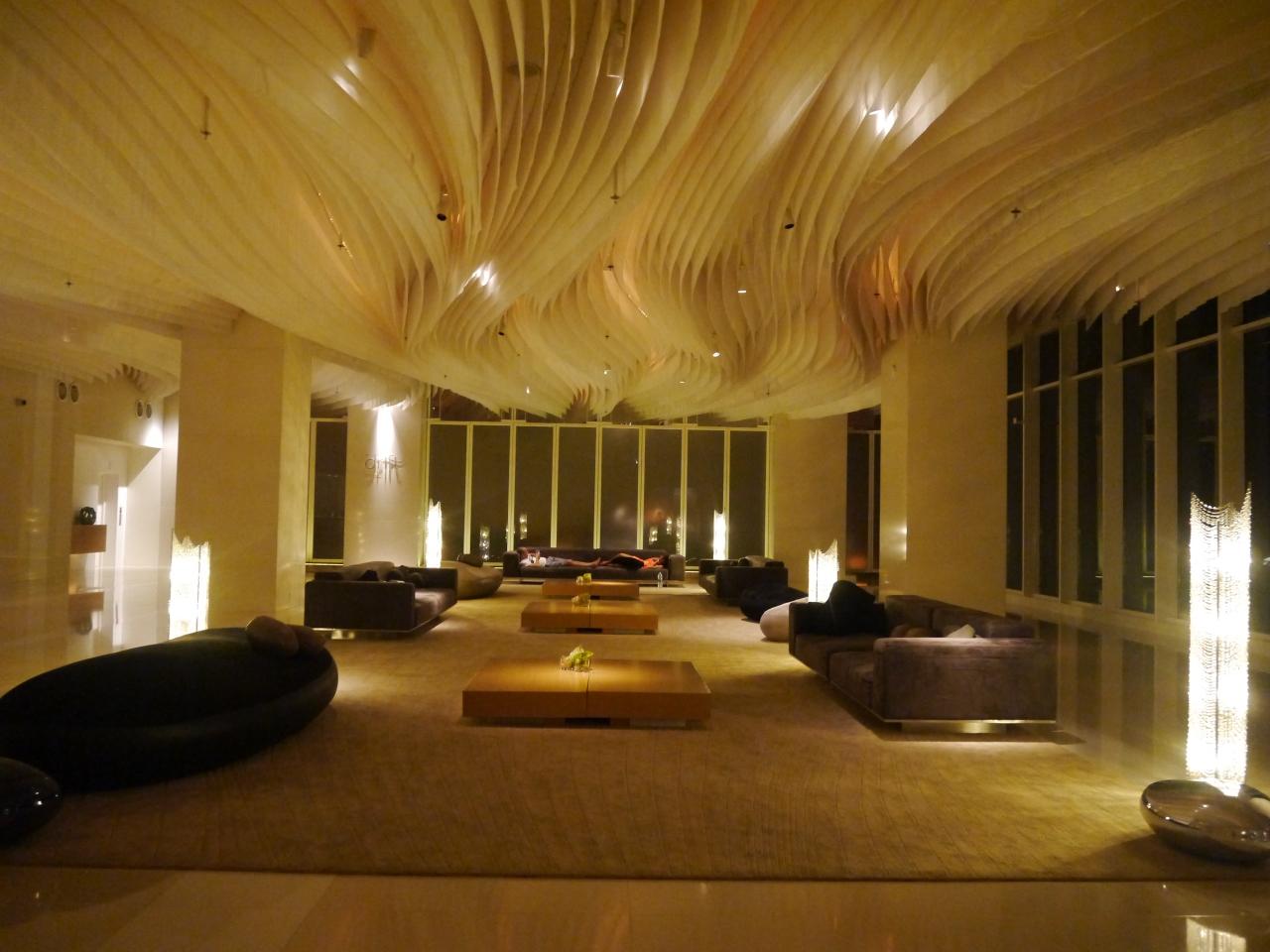暗くわかりづらいですが、ロビーの奥にあるカフェはふつーのイスもありますが、だらりと寝れるベッドタイプもあります。