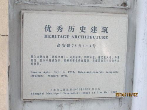 フランス租界の広安路の中程、高安路78弄1-3号にある集合住宅です。上海優秀歴史建築に認定されています。建物の内部まで入れましたので別冊で掲載いたしました。かなり生活感の出た旅行記になりました。何所帯住んでいるのか、台所は外、たぶんトイレも外だと思われます。