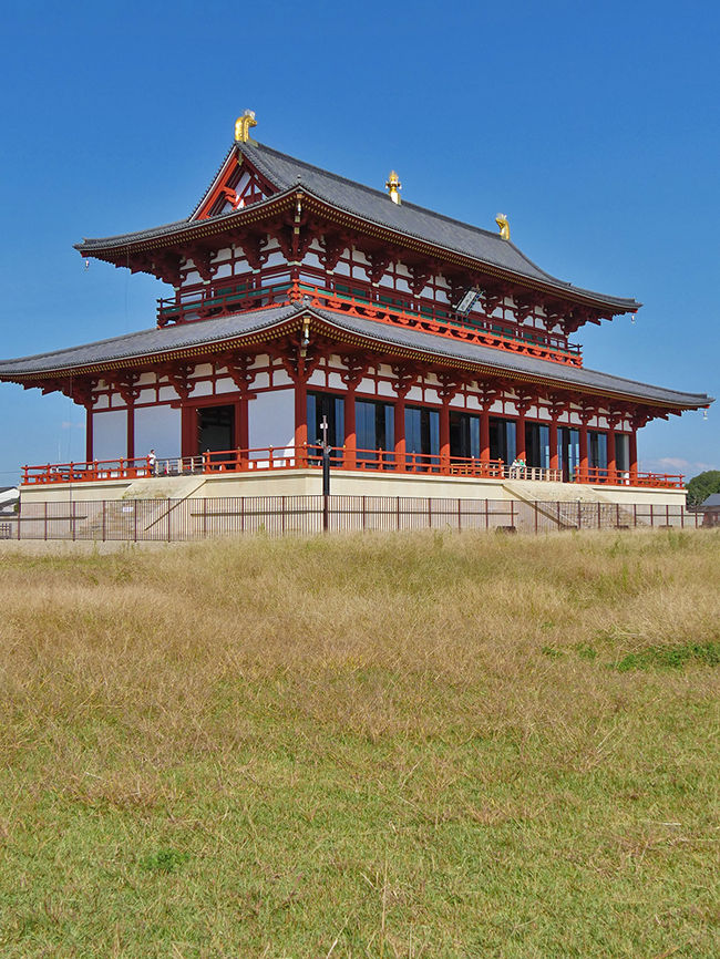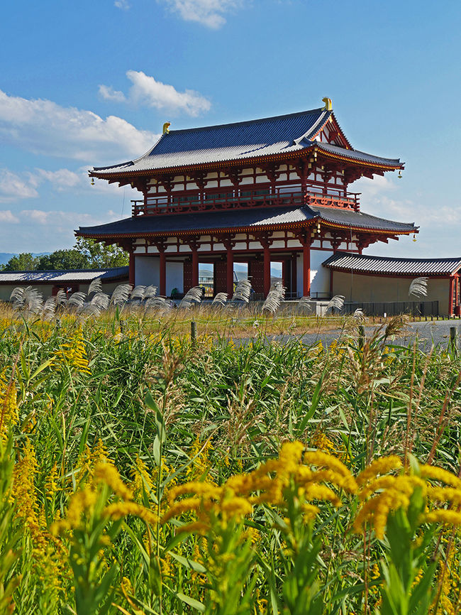平城宮は奈良の古都平城京の大内裏。1998年「古都奈良の文化財」として東大寺などと共に世界文化遺産に登録された。 -