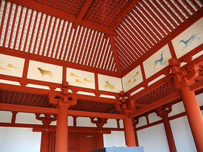 文化庁による「特別史跡平城宮跡保存整備基本構想」に基づき、遺跡の整備・建造物の復原を進めていて、費用は全額国費で行われているそうだ。可なりの規模と費用をかけ復原されつつあるようだ。既に第一次大極殿(2010年竣工)・朱雀門(1998年竣工)・宮内省地区・東院庭園地区の復原が完了している。