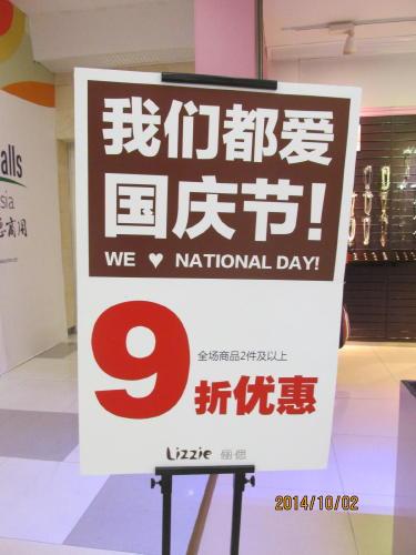 ホテル近くの龍の夢ショッピングセンター、国慶節セール。