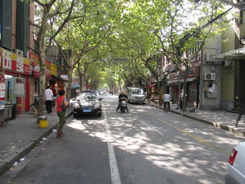 合肥路はプラタナス並木と商店街が並ぶ下町風景。