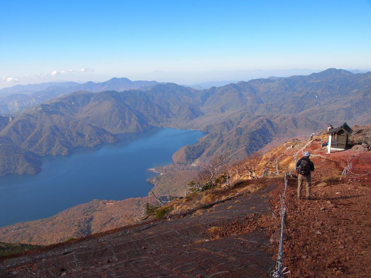 紅葉時期の男体山登山。表参道からのピストンです。下山後、車で対岸の中禅寺湖展望台、半月山展望台へも足を運びました。