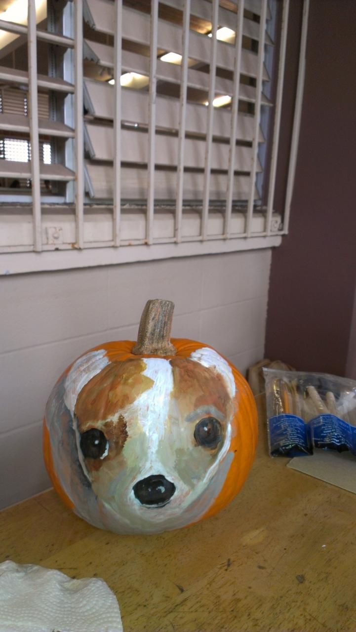先ほどのかぼちゃに可愛いい犬の似顔絵を・・・・生きているようでしょ。