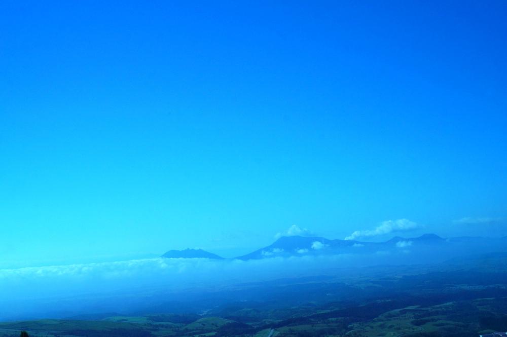 九重連山の上りの坂道の途中で見えた阿蘇の雲海