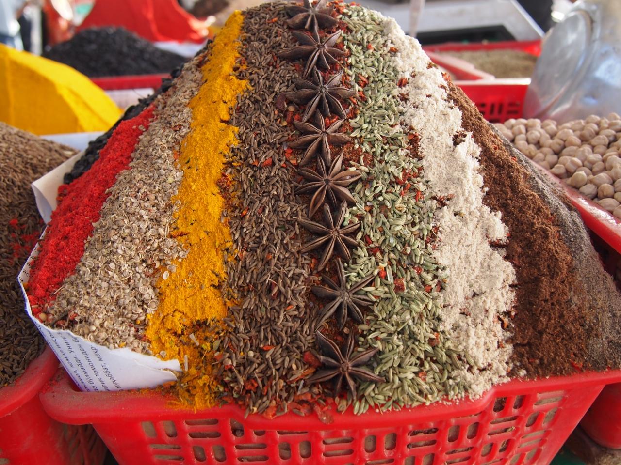 ブハラやヒヴァで見た市場と違うのは、衣類や靴も多いこと。 -