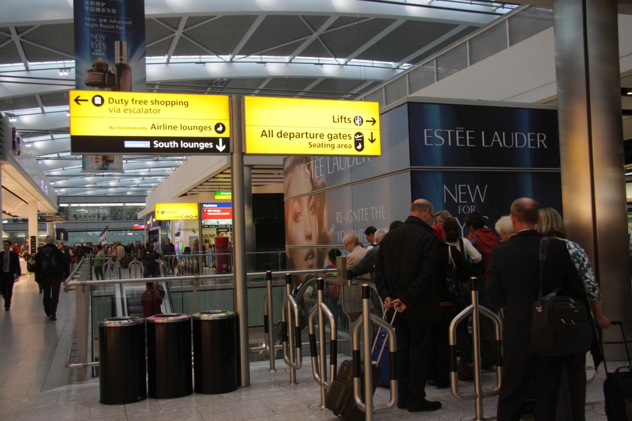 ターミナル5(T5)の乗継レーン(通路)もかなり並んでいたが、途中からイギリス(UK)内乗継に分れたので以後はスムーズに入国審査・乗継審査を受けられた。入国審査では顔写真を撮られたが質問は一切無し。