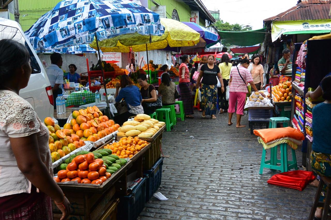 ヤンゴンで最も大きく、にぎやかなマーケット『ボージョーアウンサンマーケット』に散策に行ってきました。