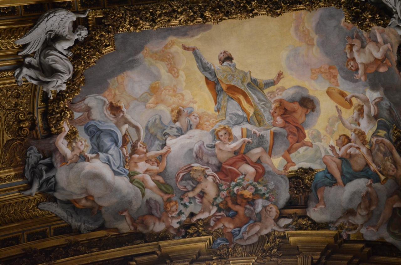 中に入ると天井画を写真に撮ろうと行列が