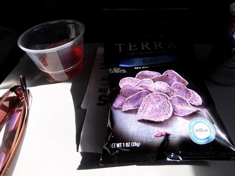 クランベリージュースと(紫色の)ポテトチップス -