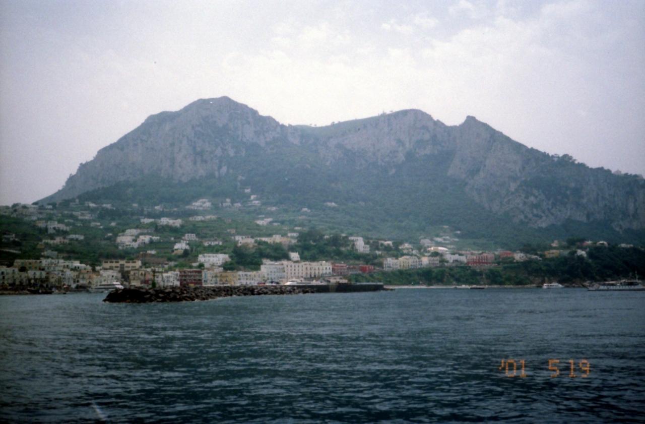 ナポリを見て死ねと言わしめた展望台、向うにベスビオ火山が煙を上げ、手前に港が広がる雄大な眺めです。