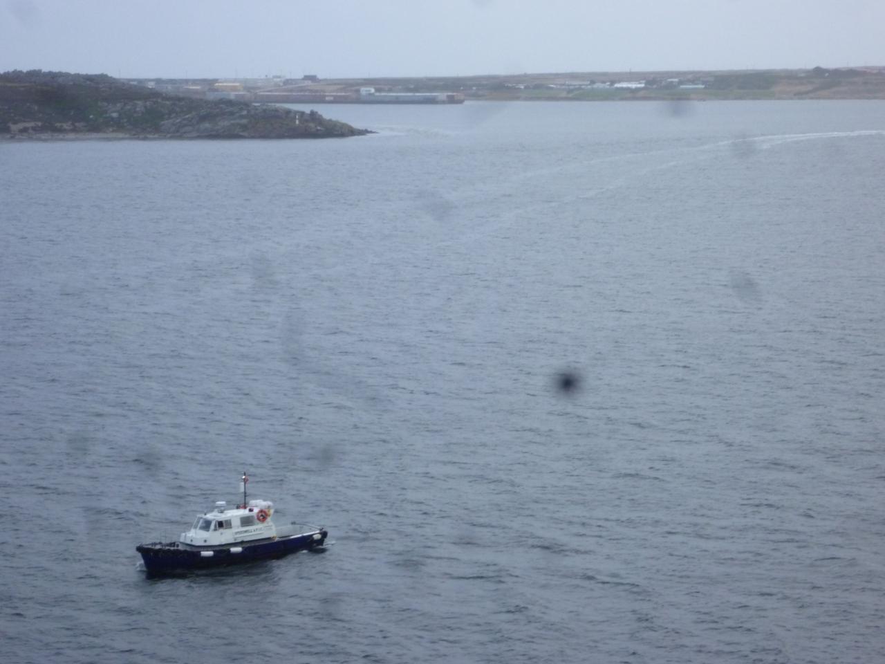 このポートスタンレーの港は浅瀬でかつ大型船が停泊出来ないので、テンダーボートによる上陸。AM08:30分に集合したが、テンダーボートは、ショア・エクスカーション参加者を優先下船させるので、約1時間強待たされる。