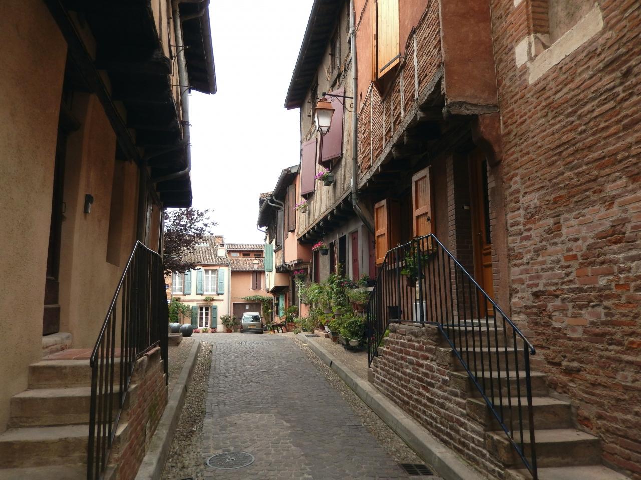 カステルヴィエル通りを進むと、町の城壁と交差するところに出ました。城壁の上は道路になっています。壁は北西方向に伸び、その先はタルヌ川沿いに北東方面に向かっています。どうやら、この辺りから旧市街に入るようです。