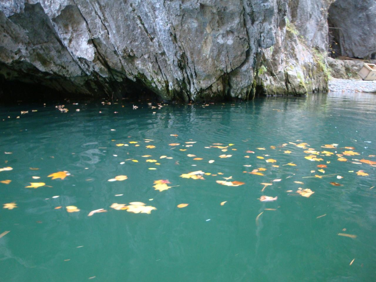 まずは猊鼻渓に。少し、雨がぽろぽろ。日があたればもっときれいなのに。