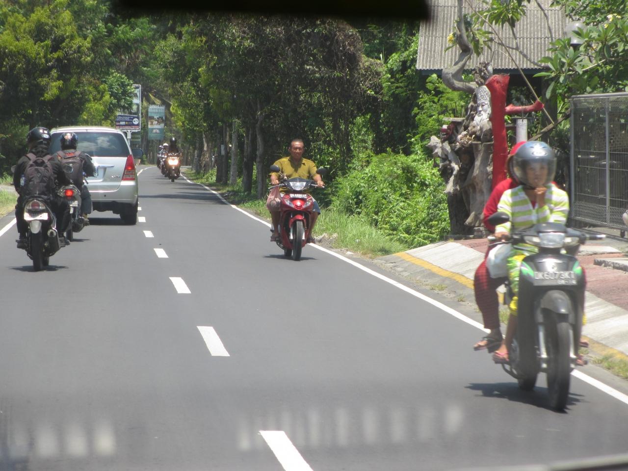 学校帰りの小学生もバイクに乗っていました