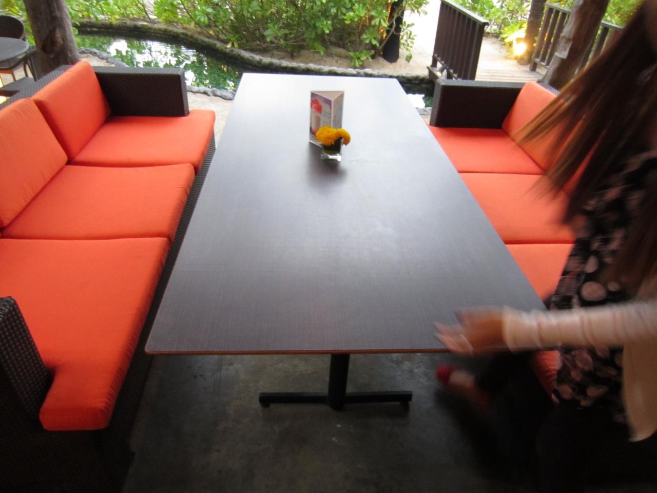 予約してなかったんで木の椅子のテーブルに通されたけど