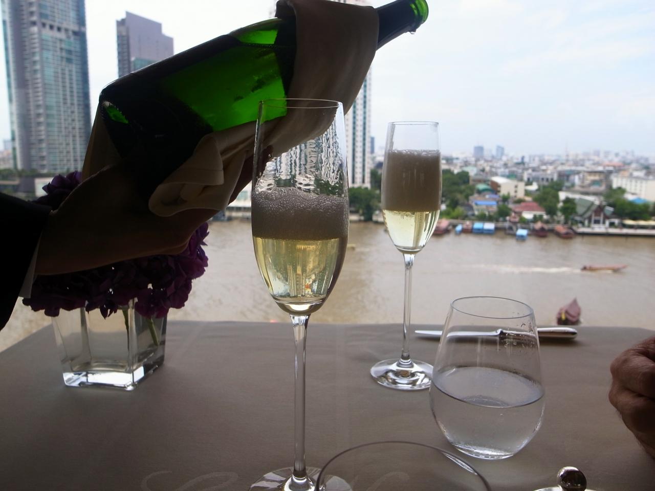 各テーブルに配られるオレンジジュースがかわいらしく見える。