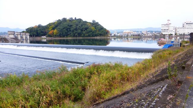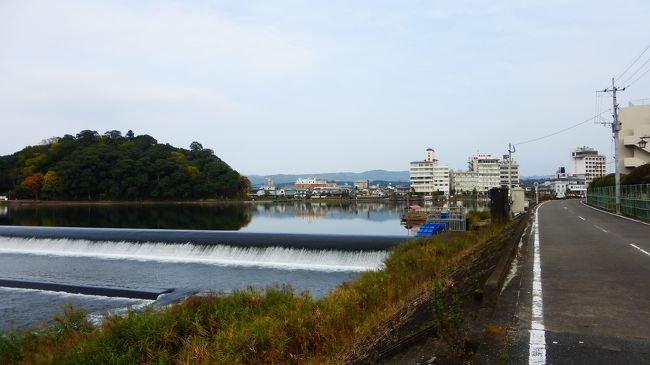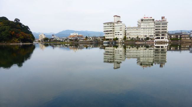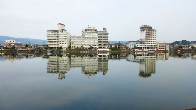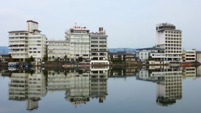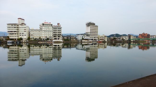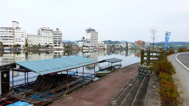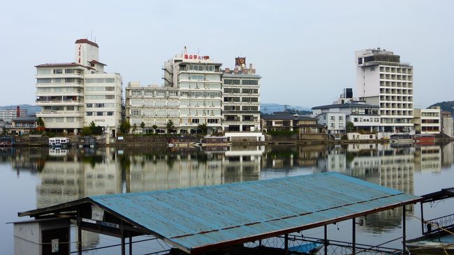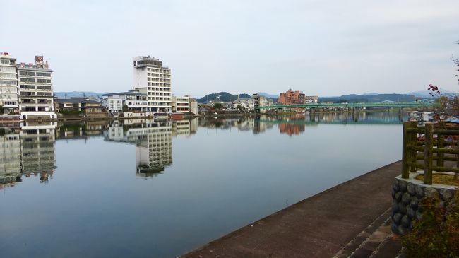 日田市内に入り、日田温泉全体が一望出来る川岸にやって来ました。