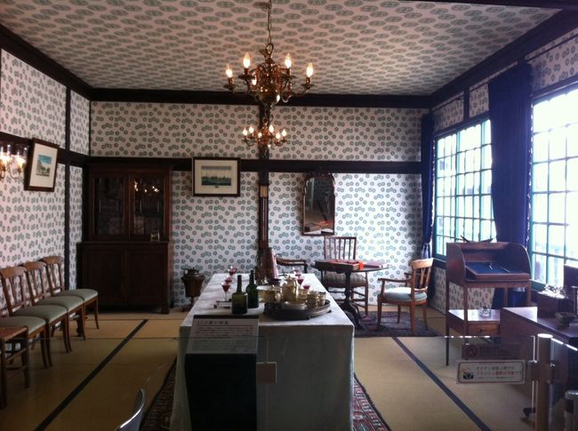 復元された建物の中の壁紙がおしゃれだ…ということ。 -
