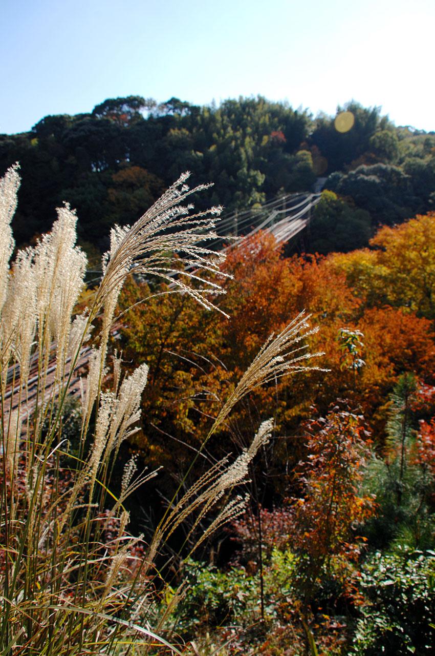 この先にあるケーブルカーが見下ろせる場所に行くと、ススキが最後の表情を見せていました。