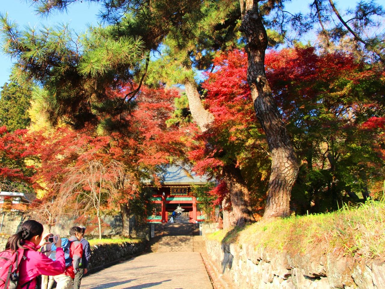妙義神社の総門へと至る参道の木々は見事に色づき、趣ある風情。
