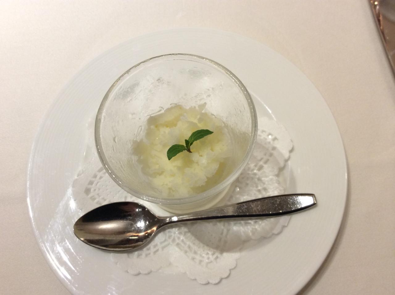 お口直しの水菓子はゆずのシャーベット。