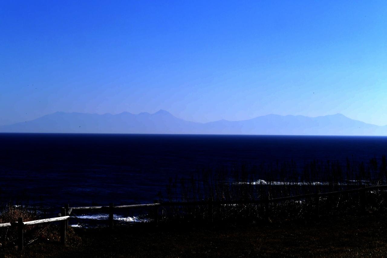 うっすらと知床半島の山々が見える