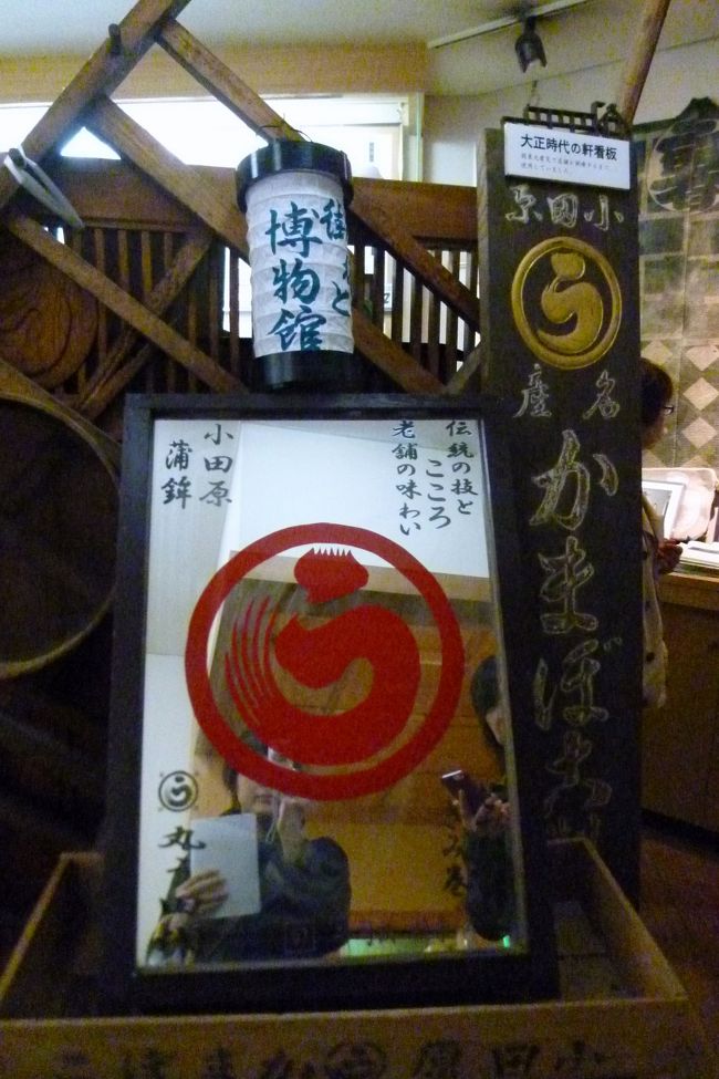 明治初期創業。大正時代からのお店の写真、小田原蒲鉾造り絵巻、原料魚の模型、つけ包丁、細工蒲鉾を展示しています。 -
