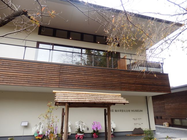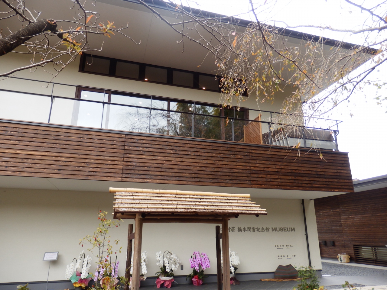 橋本関雪大画室「存古桜」です。この内部は撮影禁止ですが、見ることはできます。橋本関雪に関する様々な作品が飾っていました。それとともにこの建物からお庭全体をみるとまた格別です。