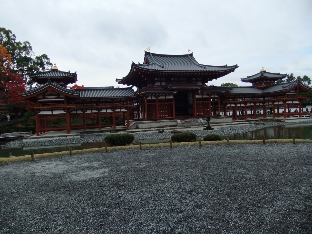 平等院鳳凰堂正面から。天気が良ければ朱がもっと映えるのですが。(写真