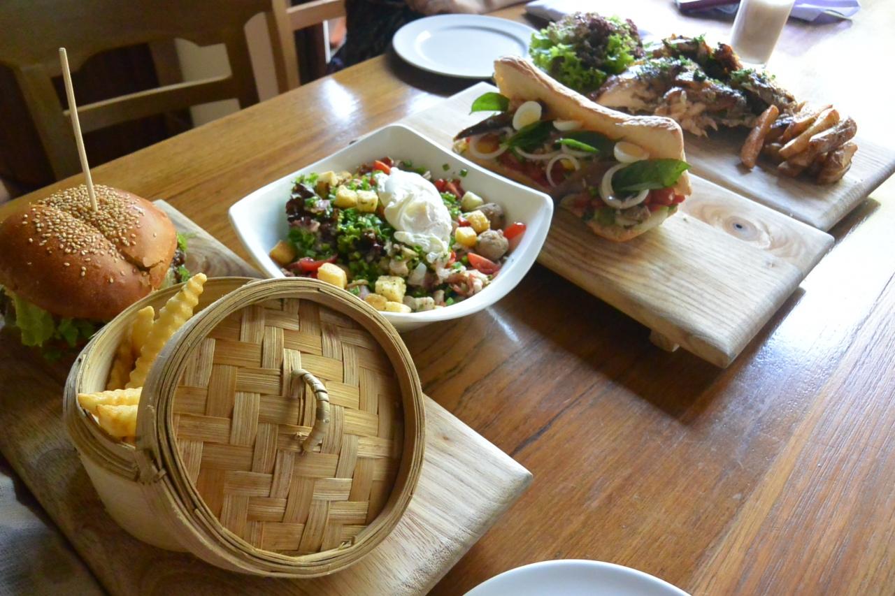 ハンバーガーやローストチキン、サラダをオーダーし3人でシェアして食べました。どれもおいしかったけど、評判のハンバーガーは、以前の方がおいしかったそうです。 -