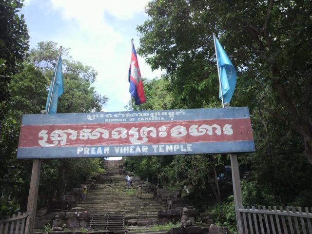 タイとカンボジアの紛争が激化する以前は、これら寺院地域に入るには、なだらかでかつ広い道路が備わった北側のタイ領から入るのが容易であり、ほとんどの訪問者がこの北側経路を利用していました。タイとカンボジアの関係が悪化し、国境が封鎖されると、カンボジア側から標高差約500mの急峻な山道を昇る必要が出てきました。途中までは、舗装された広い道路が延びていますが、途中から急斜面の山道となっています。