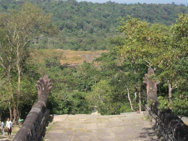 階段の向こうに、タイとの間の平地部が広がってます。 -