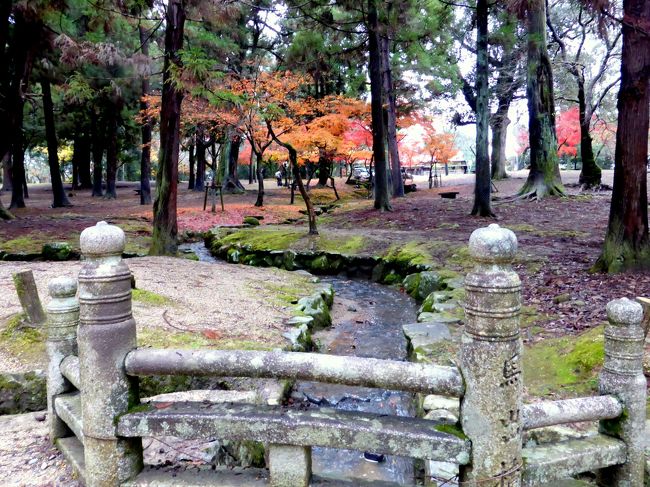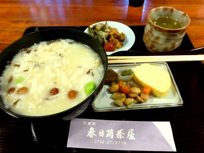 美しい紅葉や時たま現れる鹿の群れ、奈良ホテルの景観ですきっ腹を誤魔化しながら歩くこと30分、漸く見出した”春日荷茶屋”での名物と云う”万葉粥”でやっと一心地を付くことが出来た。