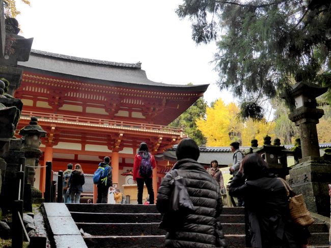 左手に着到殿を見ながら進む事30分、右に若宮神社への参道への別れ路に来ると、左手の春日大社の南門が目に迫って来た。