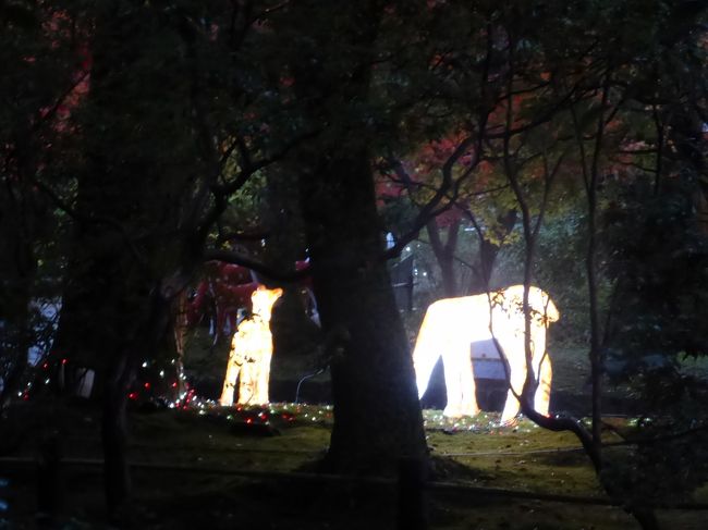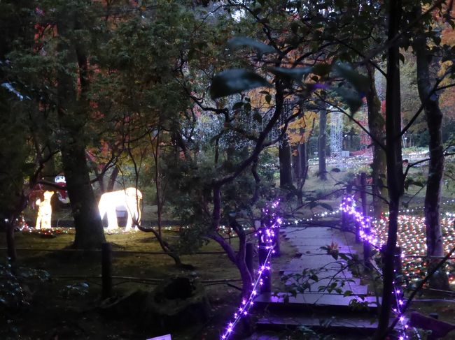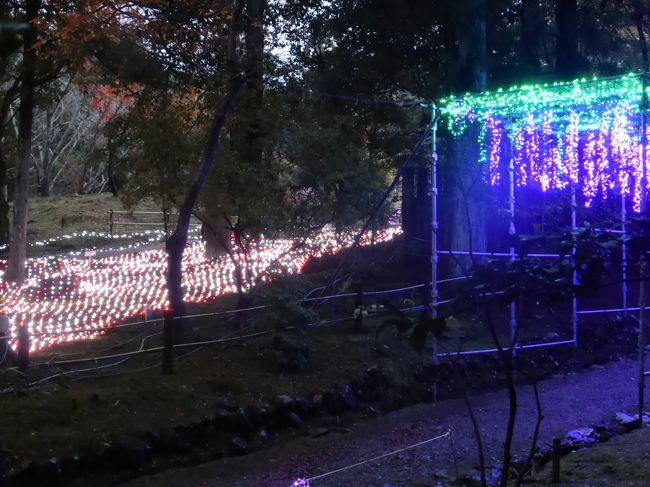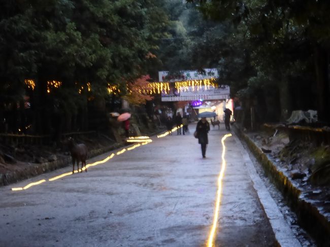 春日大社からの帰り、宝物殿に立ち寄り後、同じ参道を辿ったのだが、思わぬ春日大社神苑の中の電飾の鹿や、参道に地を這う長い電飾の帯が幾らか疲れを忘れさせてくれた。