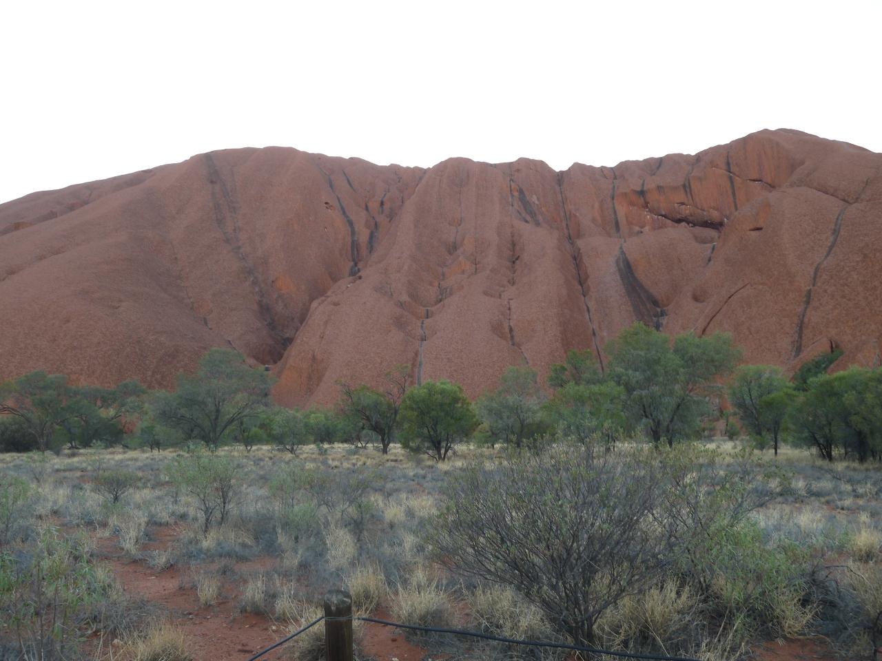 ツアーの他の参加者の皆さんは、ウルル登山に向かい、私一人、別の英語ツアーバスに乗り換えホテルに向かいます。ウルルを一週しながら、3種類のツアー参加者をポイントごとにおろしていって、さいごにホテルに戻りました。写真は、ウルルの裏側です。