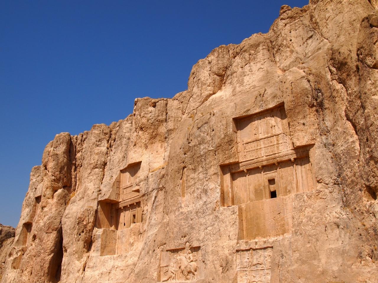迫り来る岩肌に並ぶ巨大十字はダレイオス?世ほか王様たちの墓