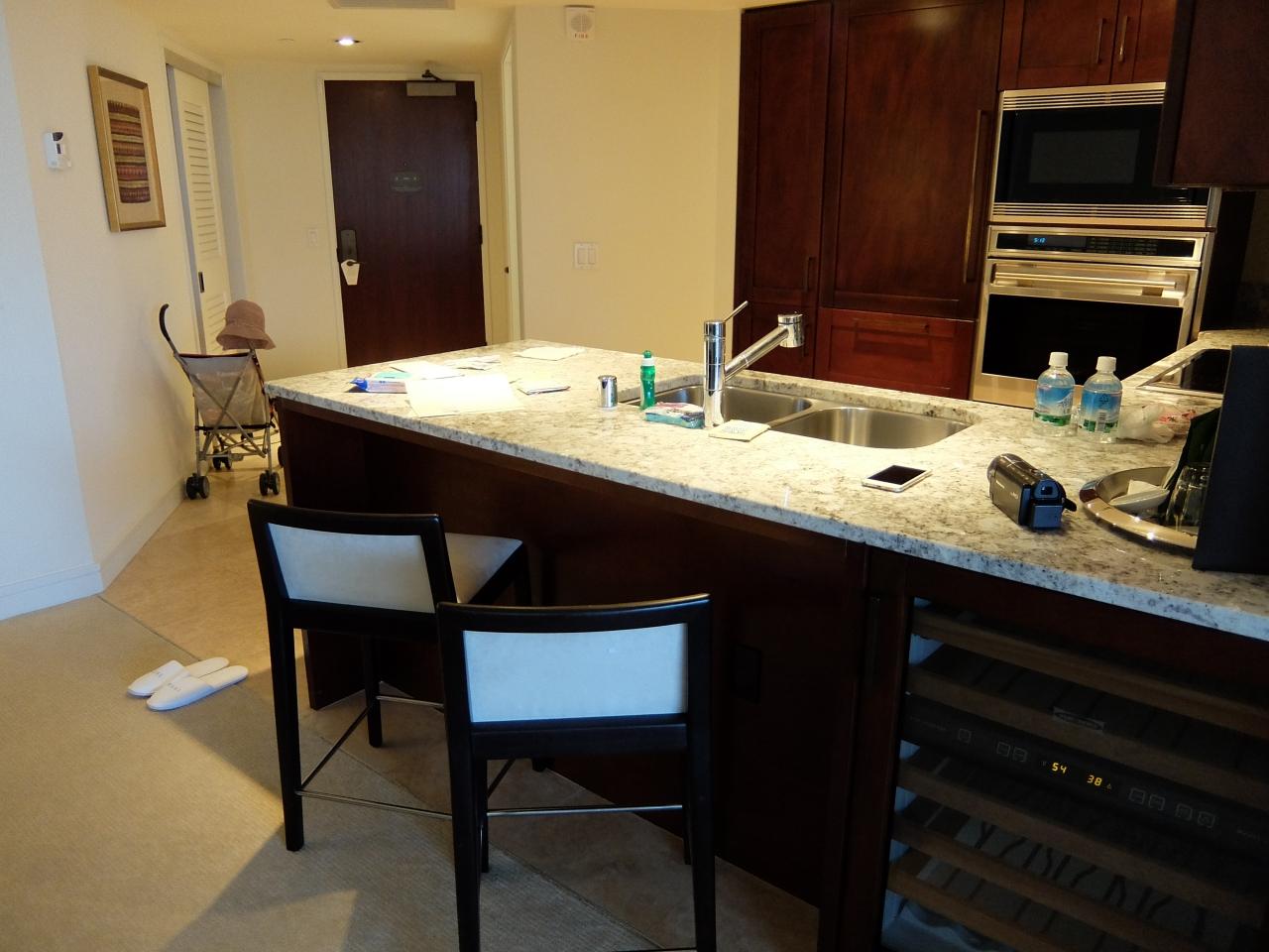 ここでアクシデント発生。1キングベッドオーシャンビューデラックスステューディオで予約していたはずが、ダブルの部屋しかないとのこと。