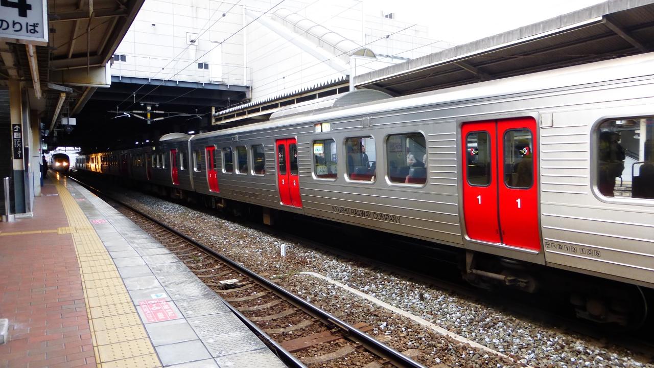 この快速電車に乗っても博多駅に行く事は出来るのですが、シート足元の暖房が熱過ぎて、とてもこの電車にずっと乗っている事は出来ないと思い、小倉駅からは特急に乗換える事にしました。 -