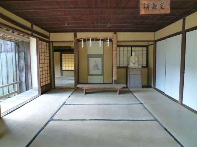 8畳の講義室には、松陰の石膏像と肖像画と机が置いて有ります。 -