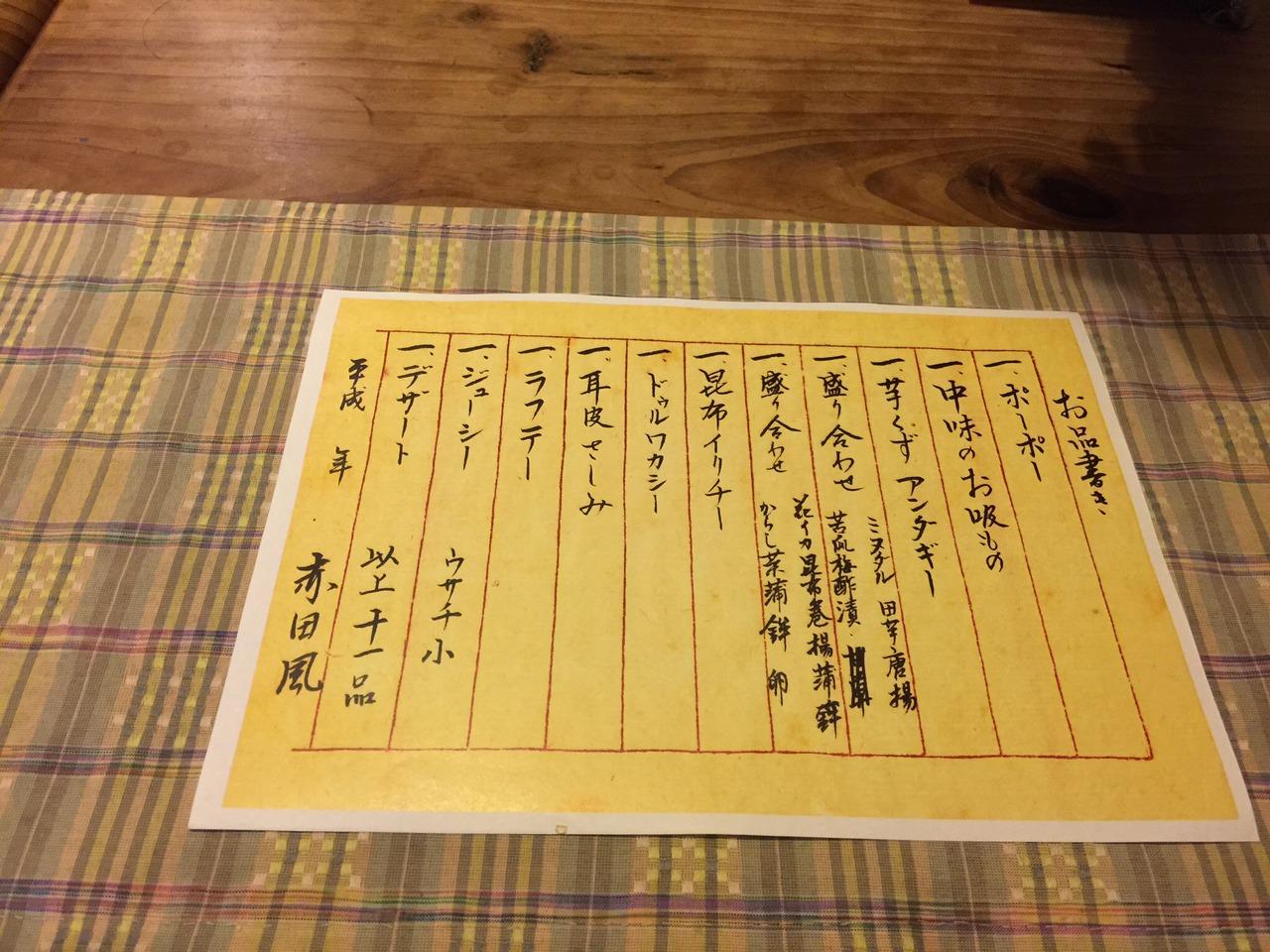 お品書きはこういった感じ。聞きなれない名前がたくさん並んでます。