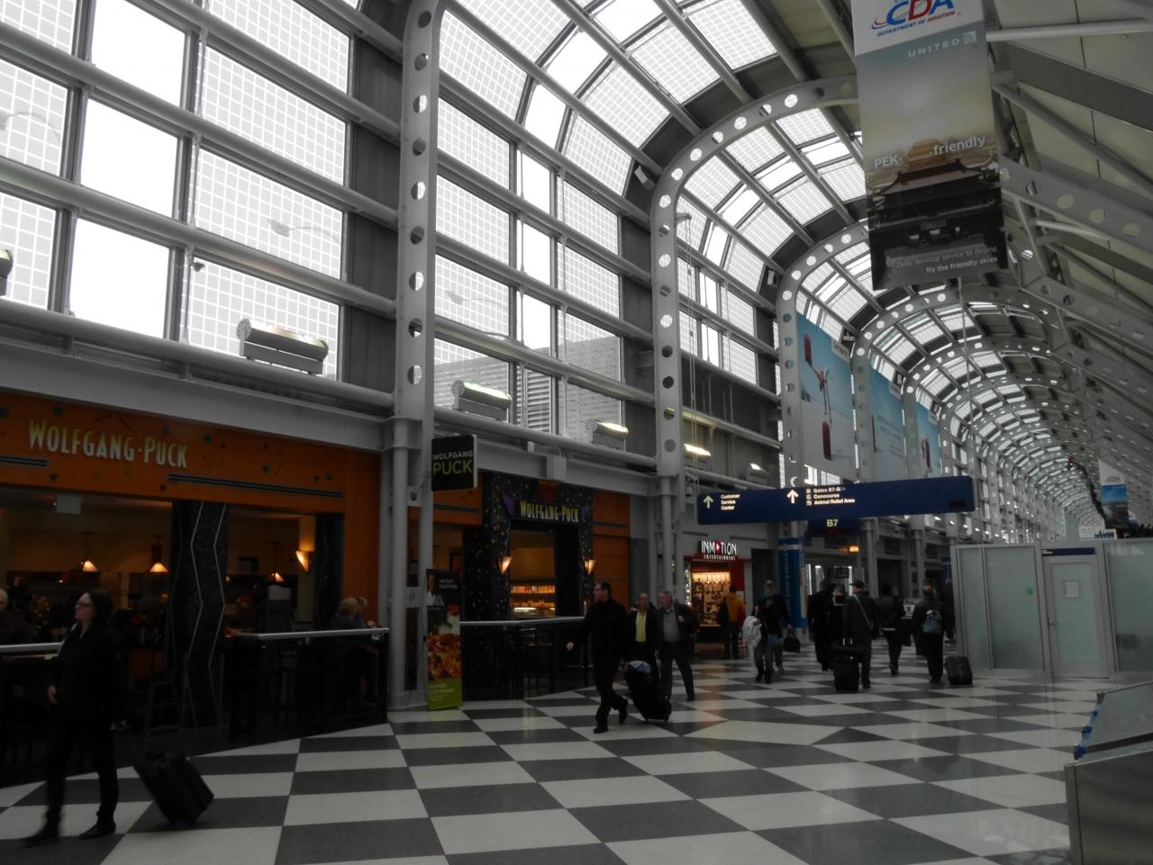 第1ターミナルに着いて、国内線のチェックインカウンターがあるので、カウンターで手続きが必要なのかな?とも思いましたが、今朝オンラインチュックインした際にシカゴ-オーランド間のチケットも印刷して持参していたので、そのまま手荷物検査所へ向かいました。