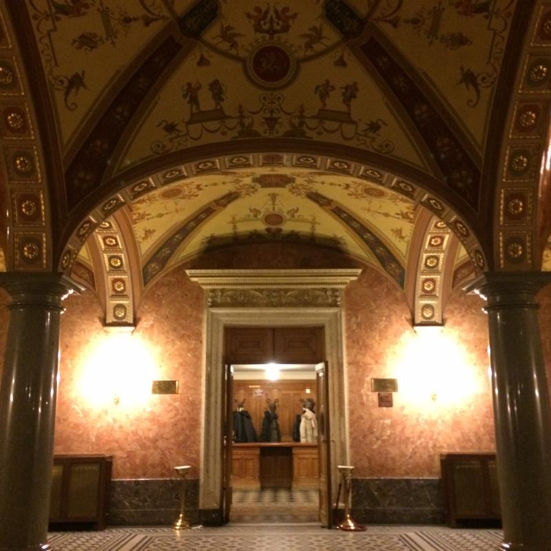 まだ第4幕が残っているので、席に戻るかどうか迷ったのですが……私、元々、建物見に来たついで、ガイドツアーに参加する代わりにチケット取っただけだしな。夜遅くに街を移動するのは怖いから、今回は申し訳ないけどここで失礼させていただこう。 -