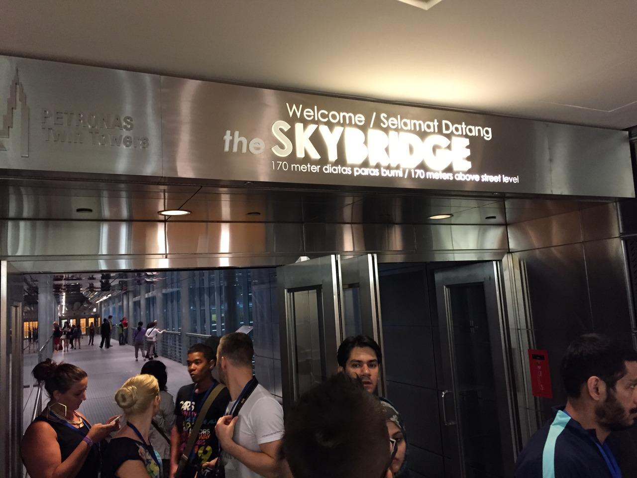まず、ツインタワーをつなぐスカイブリッジを見学します。