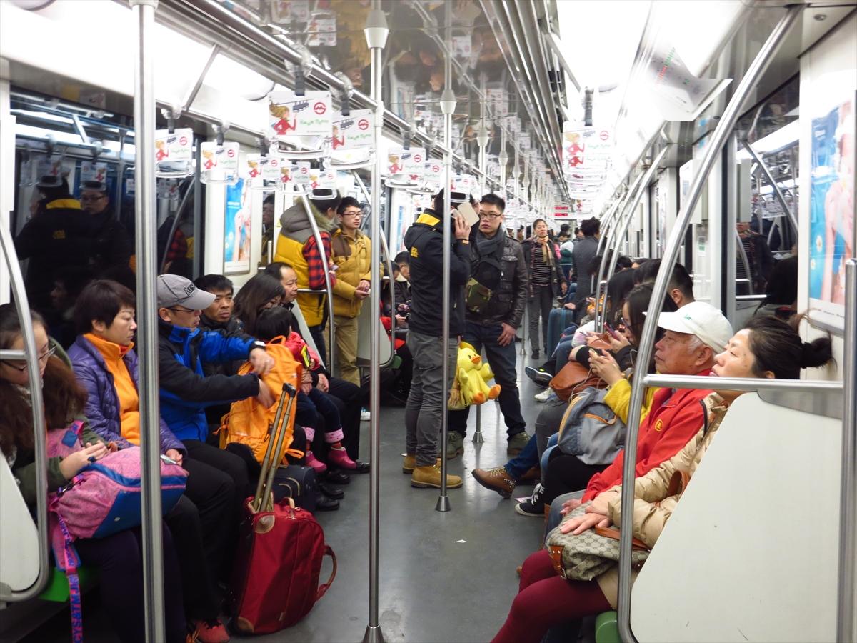 チェックアウトして、歩いて陸家嘴駅へ向かいました。Tさんが、自分のスーツケース1個、私のスーツケース2個を持ってくれました。
