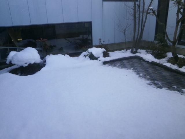 中庭には雪が積もってました
