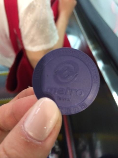 ガイドブックを見ながら地下鉄 (モノレール)へ。オモチャみたいなこのコイン(トークン)をピッとかざして出るときにチャリンと入れます。