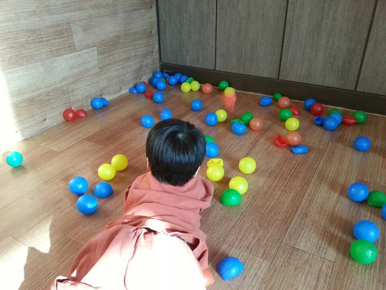 キッズスペース!ボールが転がっていて息子も興味津々!