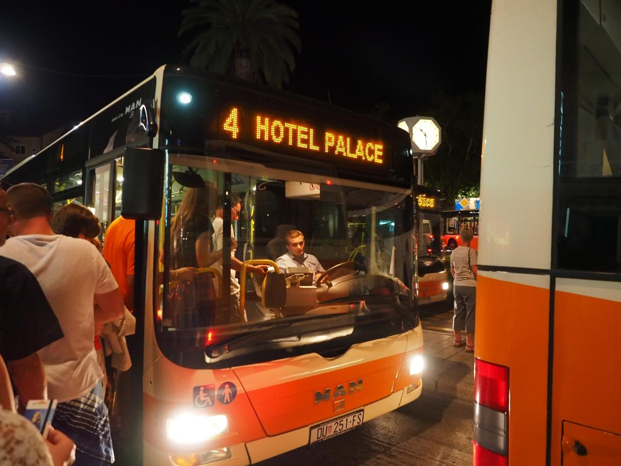 ホテル「レロ」まではバスを利用。一応、並ぶのですが開いた扉に皆さん一気に入ろうとするので列通り待っているとなかなか入れません。臨機応変に入りましょう。